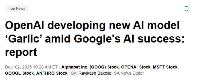 - OpenAI's "Code Red" Response To Google's Gemini 3 For App Coding Is Called Garlic 🧄